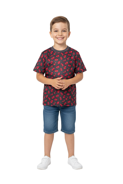 Upgrade your child’s wardrobe with our Boys Polyester T-Shirt AOP, crafted from 100% high-quality polyester for maximum comfort and durability. This T-shirt features a bold All Over Print (AOP) design that adds a fun, trendy look suitable for all occasions.