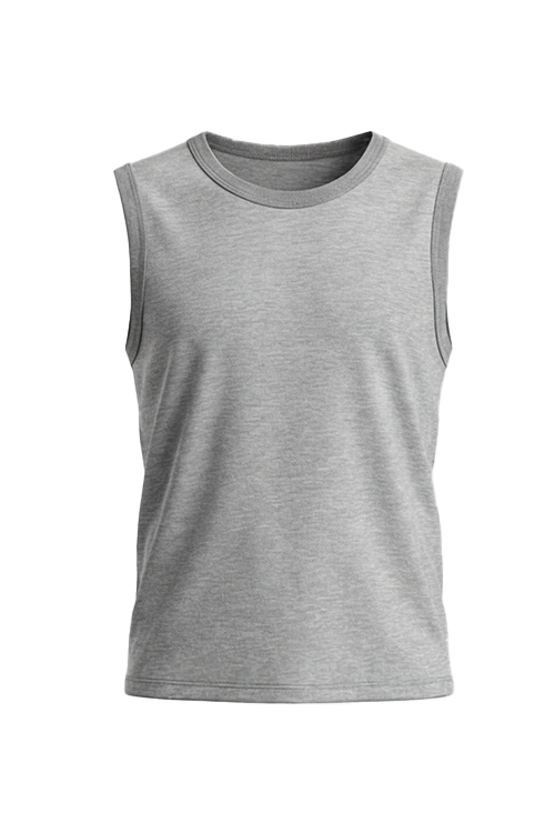 تيشيرت أولادي بدون أكمام قطن Cool Gray 4C Melange – راحة يومية بإطلالة عصرية
