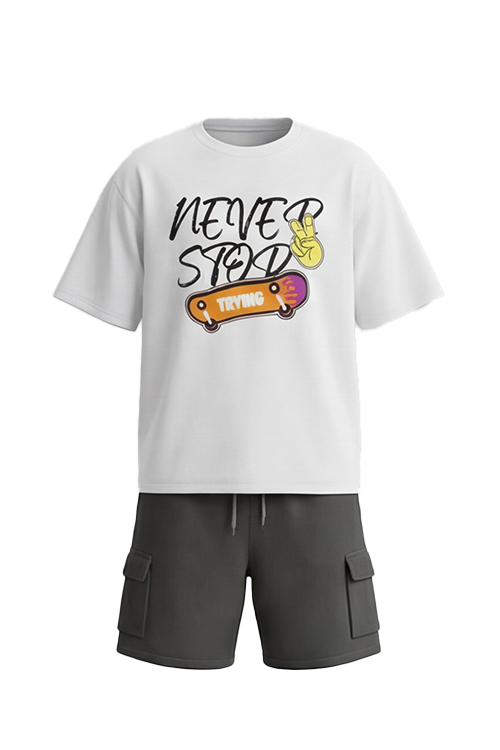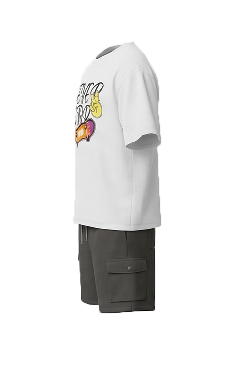 طقم بيجامة أولادي تيشيرت نص كم أوفر سايز مع شورت Bright White – راحة نضيفة بستايل عصري