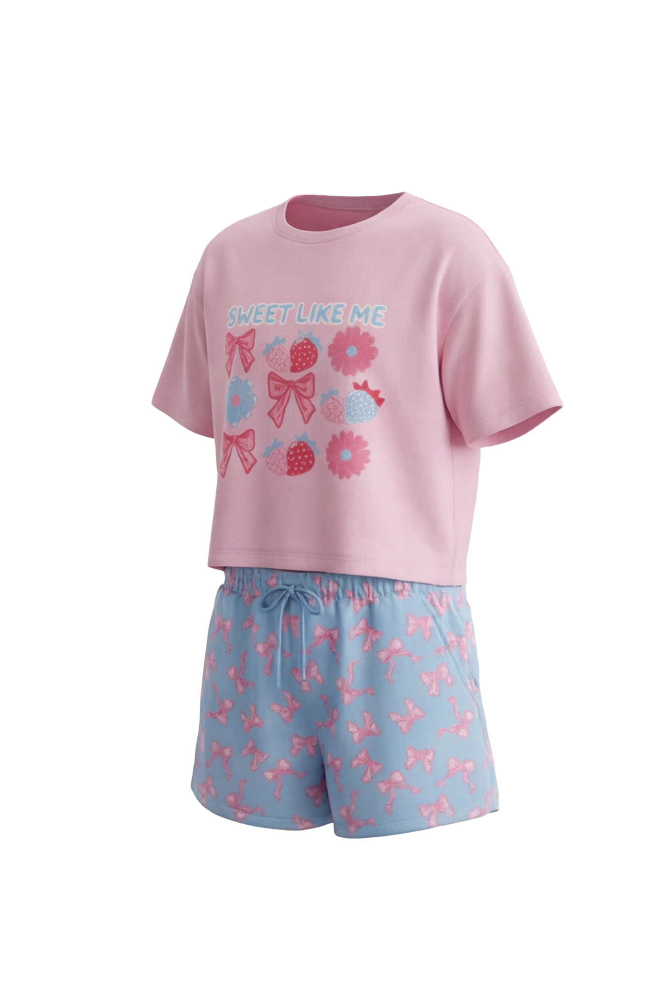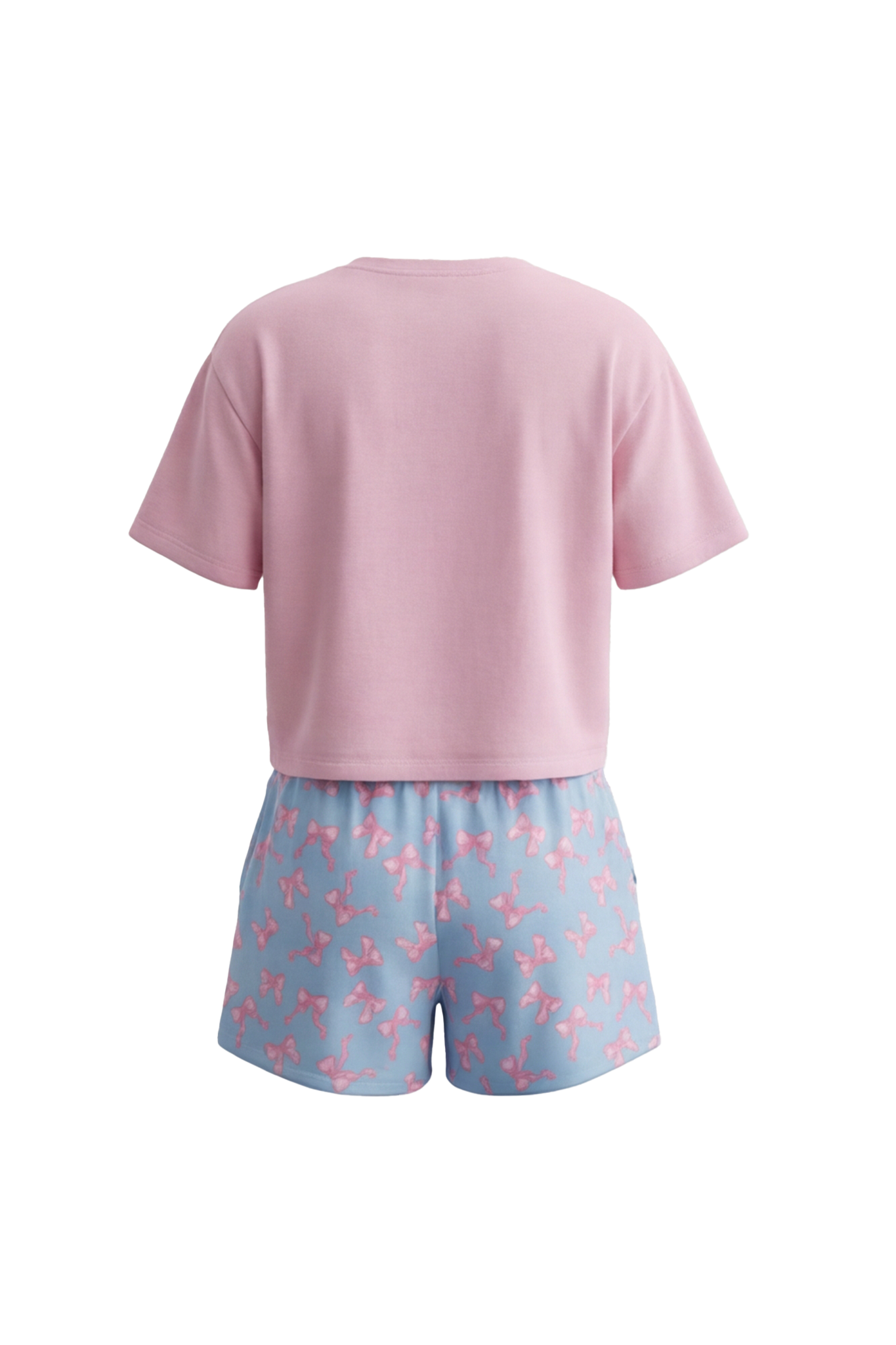 بيجامة بناتي تيشيرت أوفر سايز كروب نص كم مع شورت واسع Ballerina – نعومة عصرية بلمسة أنثوية