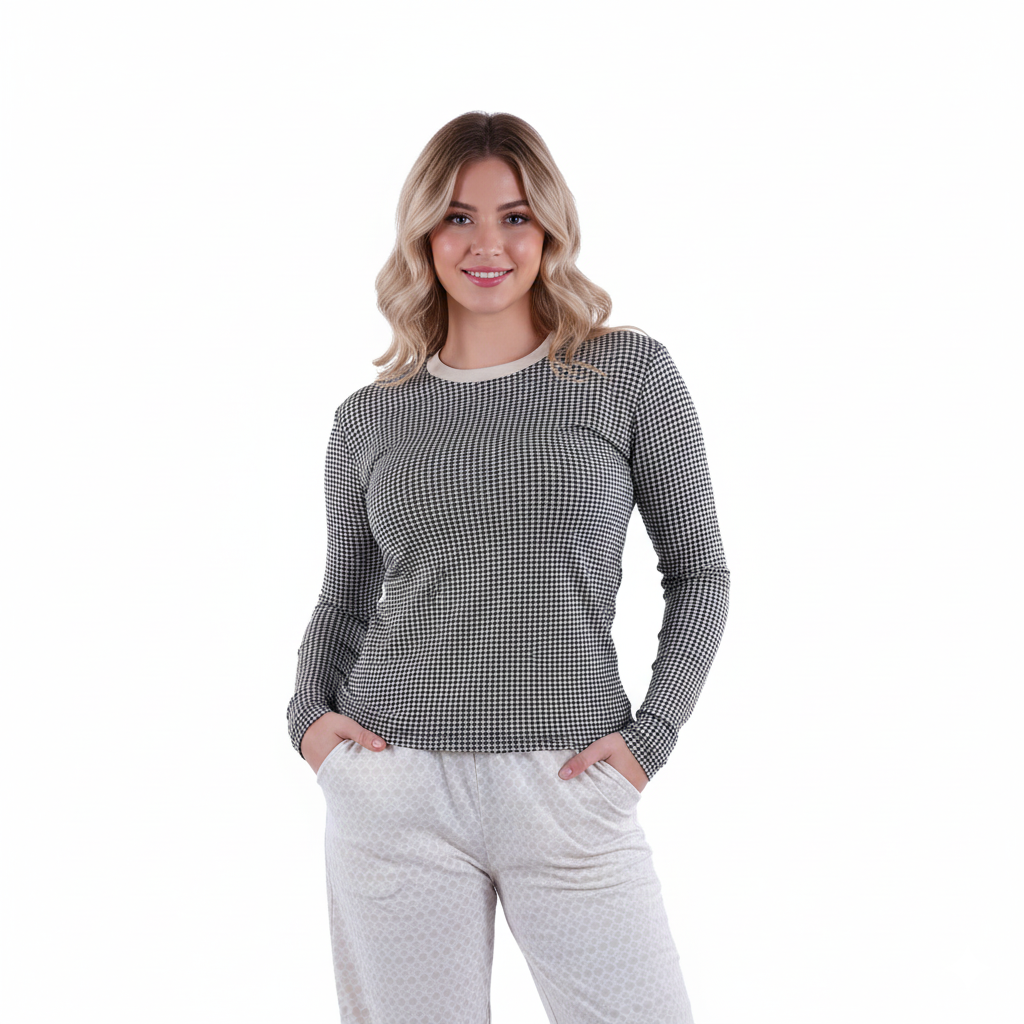 قميص جيل إل إس أزرق للنساء، قطعة واحدة، 100% قطن جيرسي مضلع