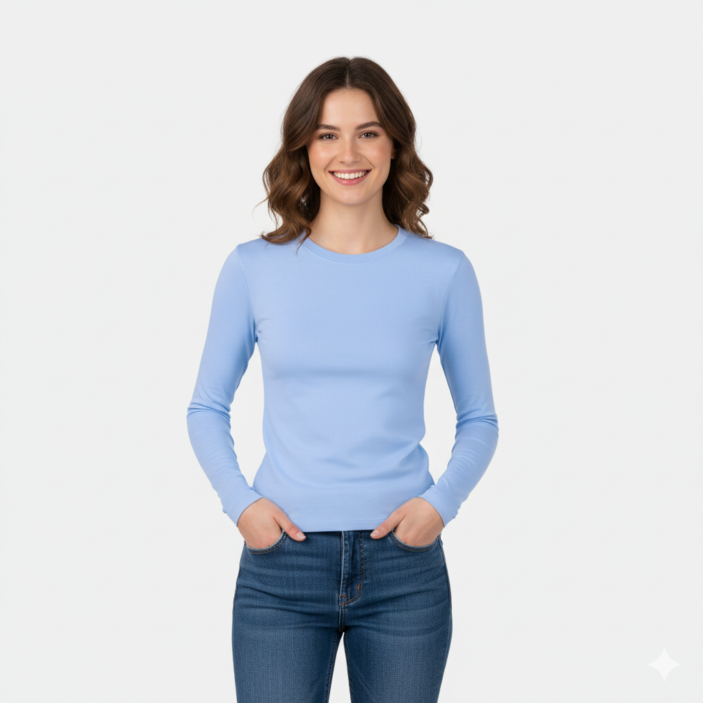 شيرت طويل الاكمام باللون الأزرق