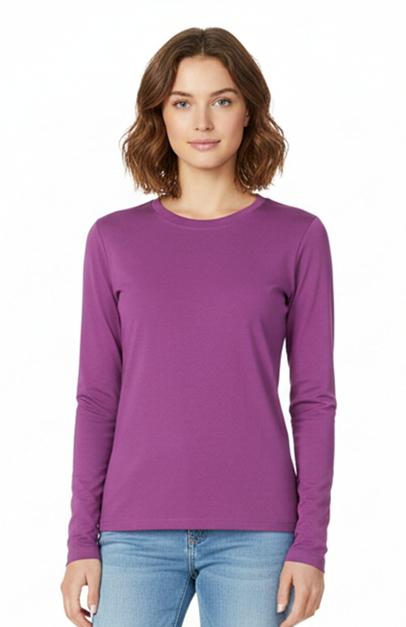 قميص JIL LS T.SHIRT Rose للنساء، قطعة واحدة، 100% قطن جيرسي مضلع