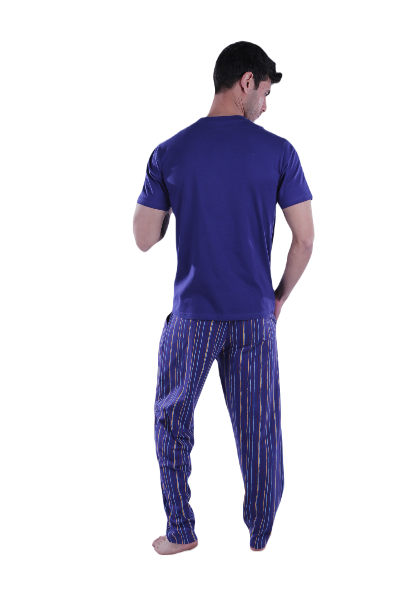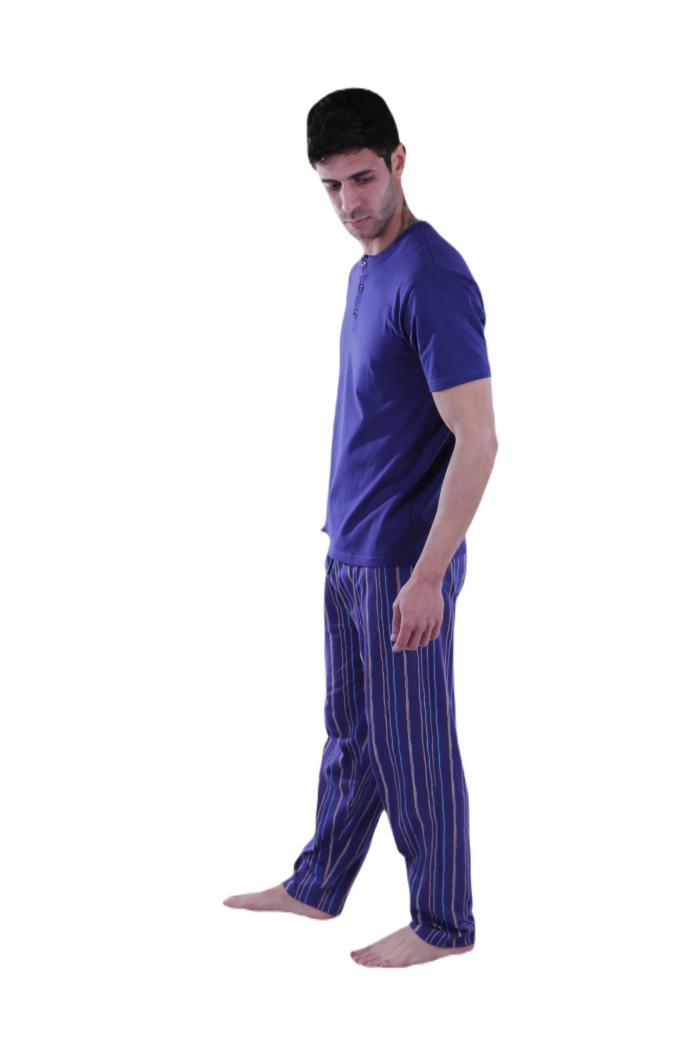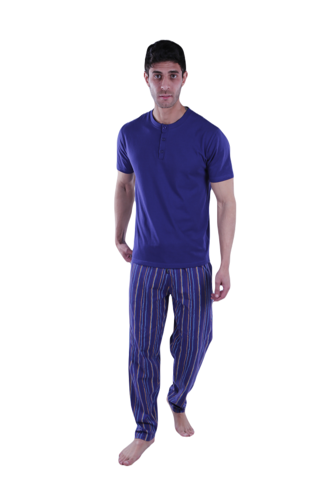 Men Short Sleeve Pajama with Placket - Blue Depths