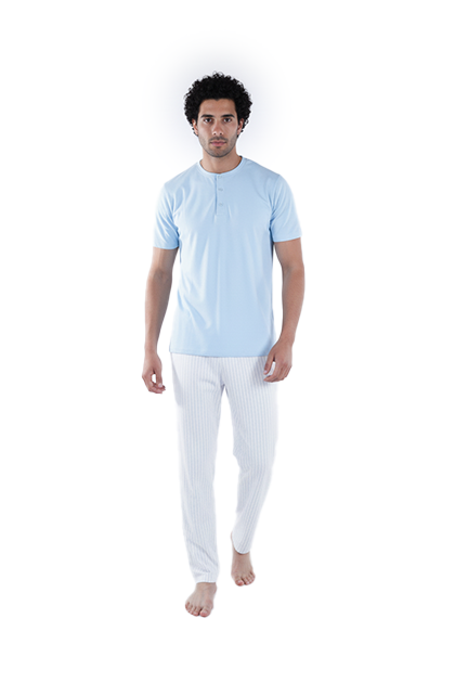 Stay comfortable with the Men’s Short Sleeve Pajama with Placket, crafted from 100% Cotton Single Jersey, offering superior softness and breathability for a relaxing sleep.