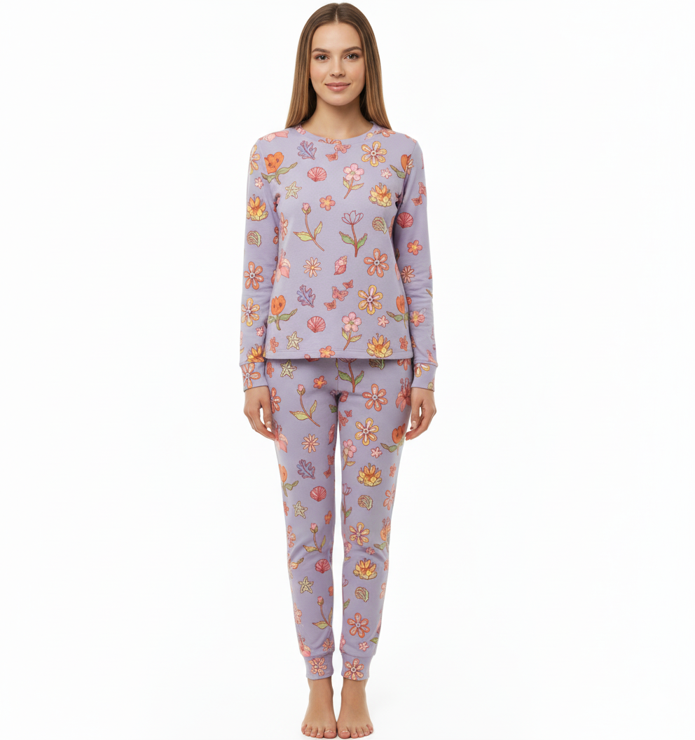 Woman LS PJ WITH PANTS AOP/Orchid Flowers, Thermal light 100% Synthetic Knit