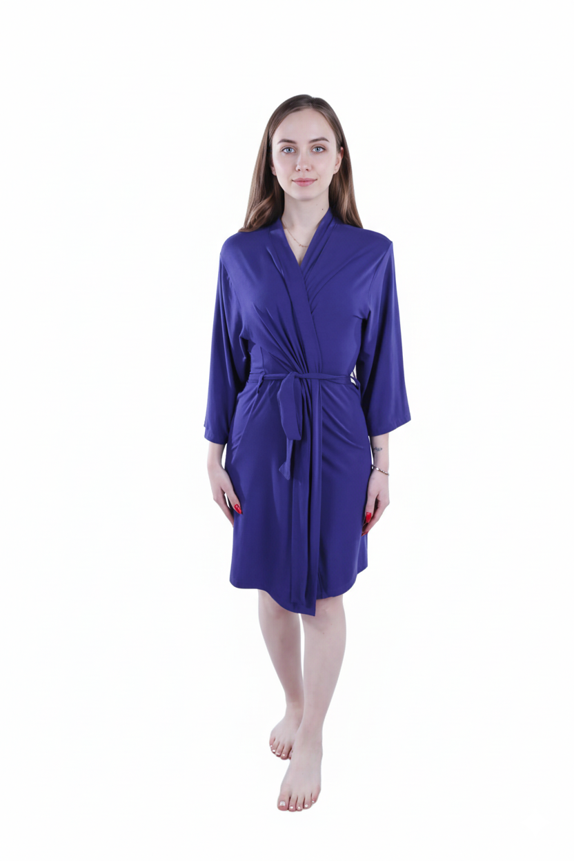 Available in two timeless colors: Blue Depths and Moonless Night, providing an elegant look for lounging or layering over sleepwear. The practical and cozy design makes it an essential wardrobe piece.