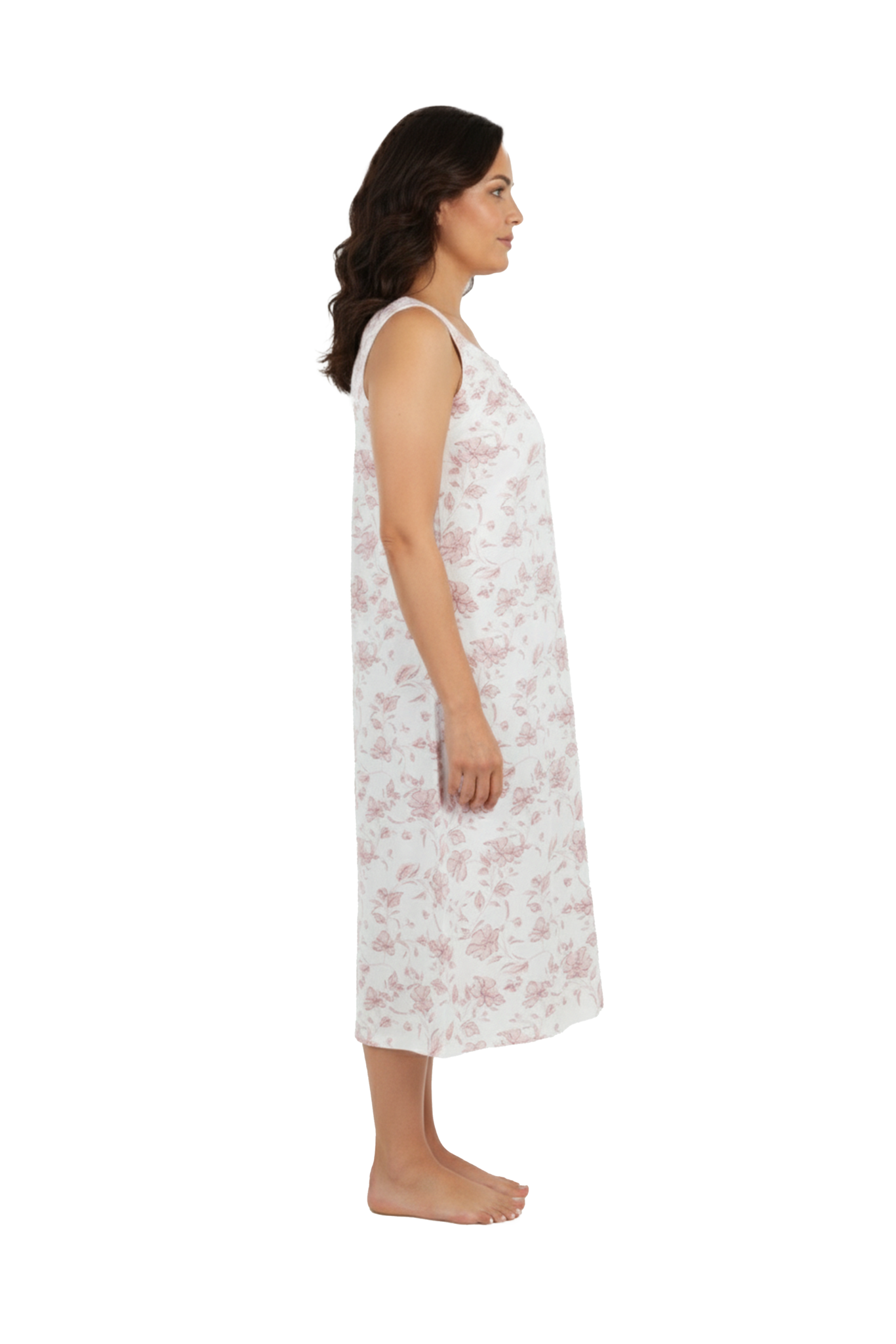 white floral dress for women, women sleeveless woven dress, mother collection white dress, breathable cotton dress, plus size white floral dress, casual dress for moms, comfortable sleeveless dress