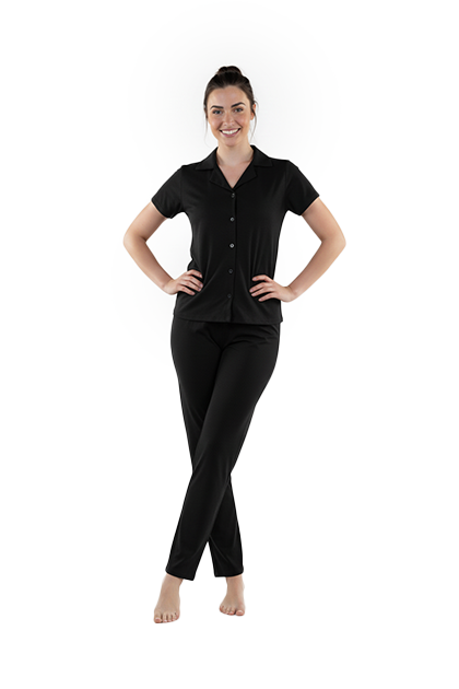 Women Short Sleeve Label Pajama with Pants - Moonless Night