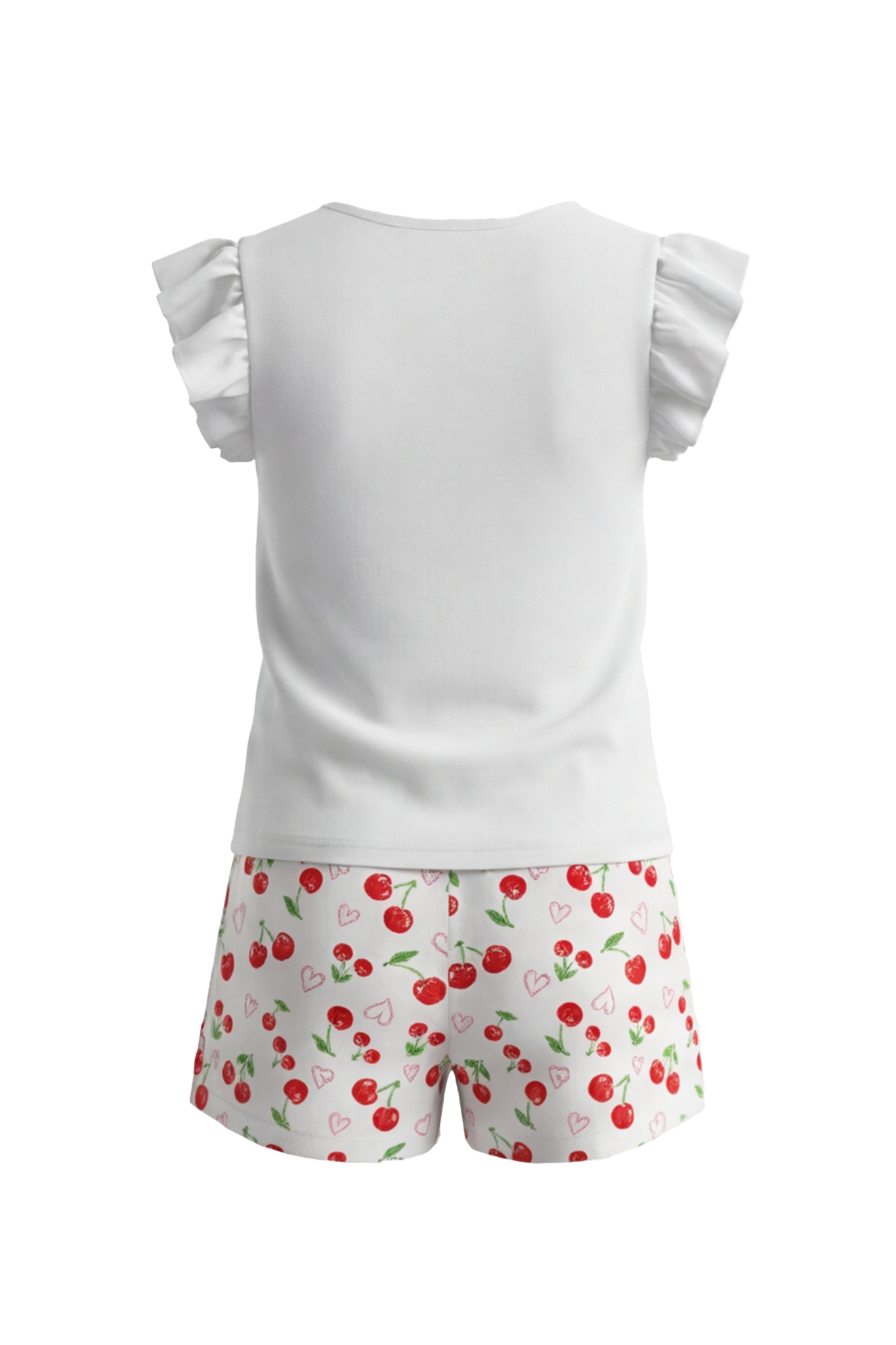 Crafted for comfort and playful elegance, this girls pajama set features a ruffle cap sleeve top paired with matching shorts. Made from premium Cotton Single Jersey (100% Cotton), it ensures a soft, breathable, and lightweight feel ideal for restful nights and relaxed moments.